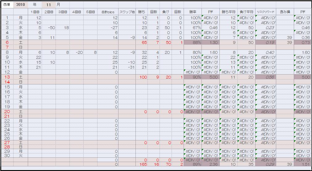 | 12 | pips | 10 | pips | -27 | pips | 6 | pips | 14 | pips | 5000円スタート♪ | |