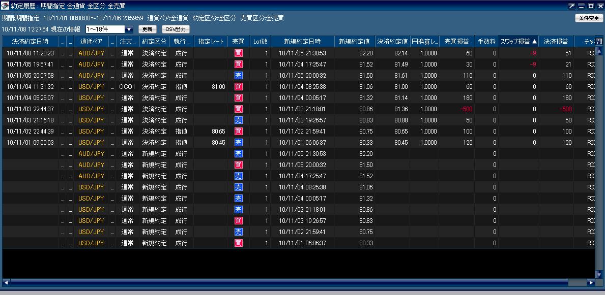 | 12 | pips | 10 | pips | -27 | pips | 6 | pips | 14 | pips | 5000円スタート♪ | |