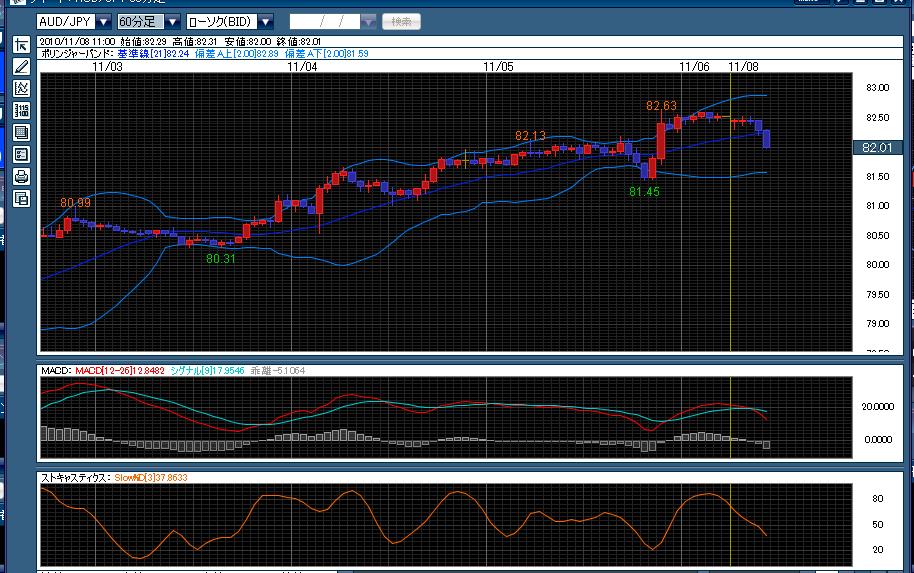 82.04L 82.20で指値するも1pips足らずで下落